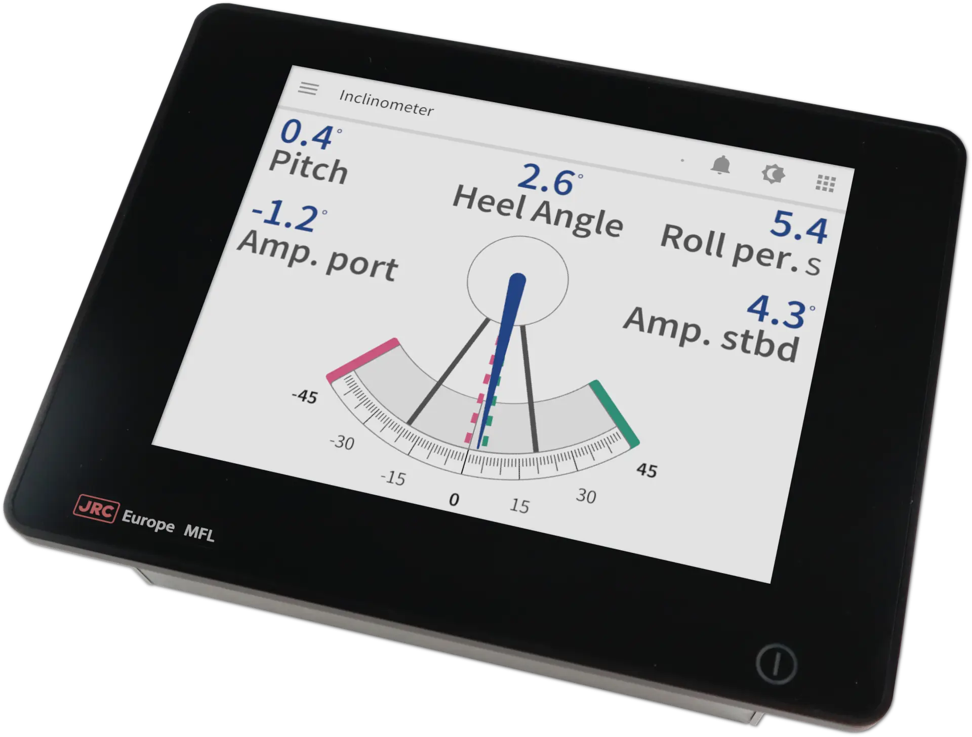 JRC Europe has developed a complete solution, combining a high-precision roll sensor with a dedicated display, fully compliant with IMO Resolution MSC.363(92) – Performance Standards for Electronic Inclinometers. Our robust digital roll sensor delivers accurate and reliable measurements, ensuring long-term performance under demanding maritime conditions.