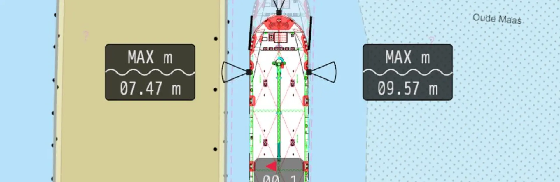 One of the most innovative features for inland shipping is ‘lock approach’. In this function two so-called ‘lock lines’ are shown, which indicate from the outside ship what the path of the ship is for the coming minutes. These dynamically drawn lines are used to indicate when entering a lock whether the ship is sailing in the correct direction and speed.