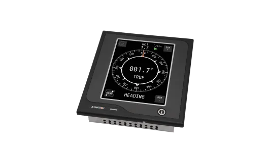 The AlphaLine Indicator MFM is easy to operate via an intuitive 6.5-inch, color touchscreen display and is available in two colors that form a well-aligned complete whole. Smart, clear, consistent, safe, just some of the ways to describe what the AlphaLine Indicator Display series of navigation and communication instruments bring to the bridge of the future. A software-driven instrument line that will meet the requirements of information displays for use in the marine and offshore sector. The AlphaHeading Indicator is a Type Approved system for showing the ship’s heading information from a standard ship’s compass. It can show Heading, magnetic or true, and Rate of Turn.