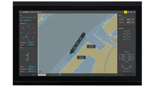 Our new Docking software is the second member of applications of our powerful all-in-one software suite AlphaMINDS (Multifunctional Information Navigation Display System). This Docking application can be used within the complete suite or as a standalone application. The Docking screen contains all information needed for safe navigation during the docking procedure of a vessel.