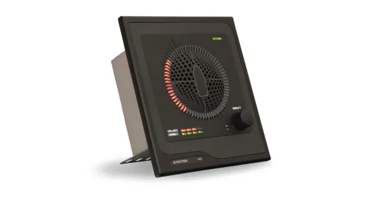 The AlphaSSRS is a complete Sound Signal Reception System (SSRS) consisting of a display and antenna, designed to receive and detect foghorn sounds from other vessels and is for use onboard one-man operated enclosed bridge class ships. The display features an adjustable volume and dimmer and is highly suitable for fore and aft bridge mounting. The sound reception system enables the watch officer to receive warning signals of nearby vessels within a 70 to 2100 Hz frequency from all directions and suppresses unwanted background noise allowing reception of only relevant sounds. A secured web interface is used for logging and configuring the system. It also provides the system status, making it is easy to get access to settings, parameters and errors of the sound signal reception system which can save time during trouble shooting. At the same time, the website interface allows you to easily maintain the system for firmware updates, reset or factory restore functions.