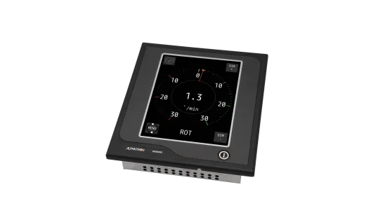 The AlphaLine Indicator MFM is easy to operate via an intuitive 6.5-inch, color touchscreen display and is available in two colors that form a well-aligned complete whole. Smart, clear, consistent, safe, just some of the ways to describe what the AlphaLine Indicator Display series of navigation and communication instruments bring to the bridge of the future. A software-driven instrument line that will meet the requirements of information displays for use in the marine and offshore sector. The AlphaTurn Indicator for sea-going vessels is a MED Type Approved system for showing the rate of turn (ROT) from a standard ship’s compass.