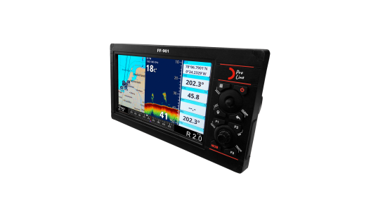 A multifunctional marine system designed to put every detail at your fingertips. Complete with 9-inch touch display the FF-901 offers an easy to operate solution for navigating and fish finding. The system can be operated in multiple ways. The FF-901 maximizes the benefits of the touch screen with the reliability of an ergonomic keyboard. The rotary knob gives you a fast and precise control in every condition, while the touch screen allows the best experience in map exploration and route building. The system offers user customizable keys. Programming F keys give you instant access to three of your favorite functions.