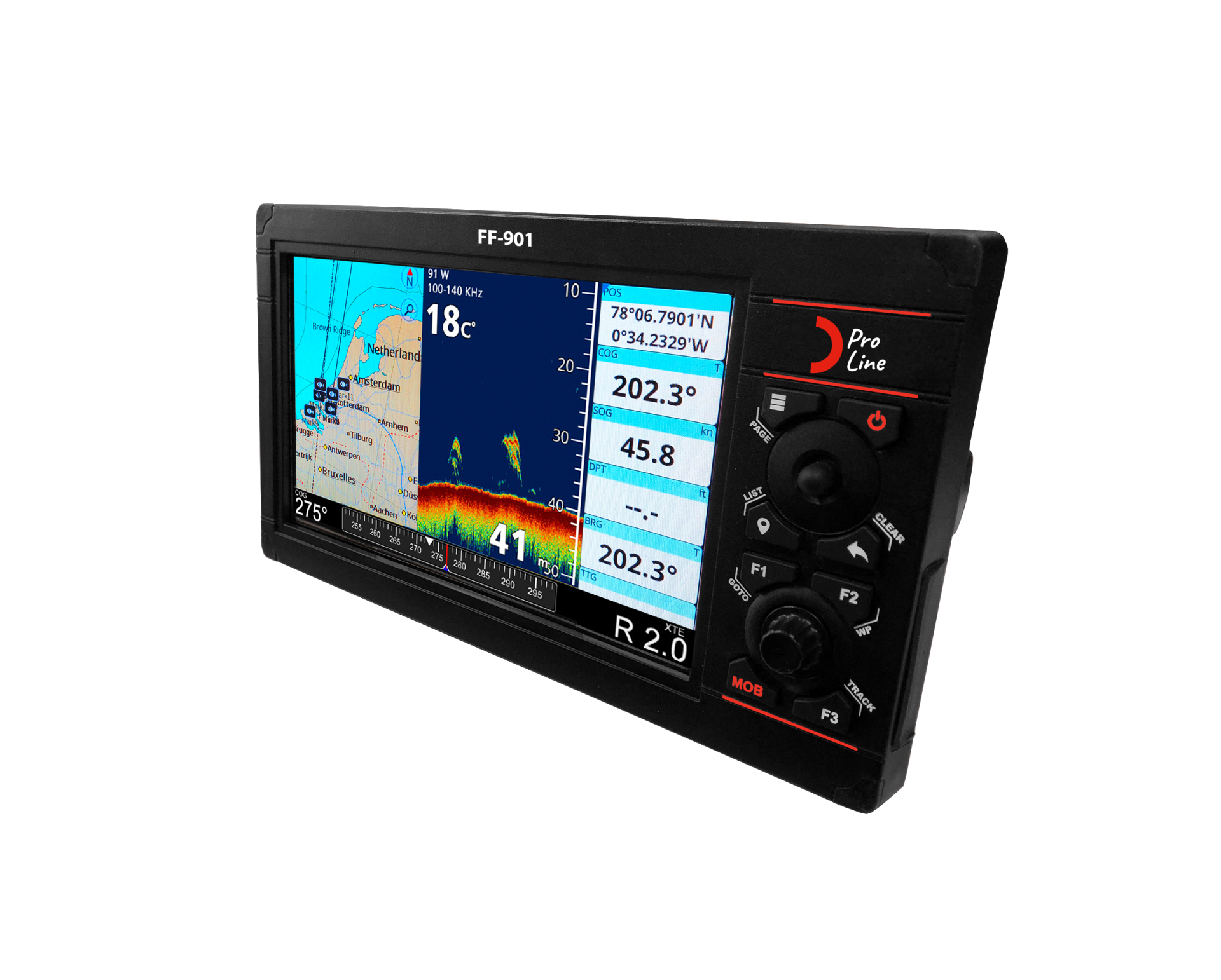 A multifunctional marine system designed to put every detail at your fingertips. Complete with 9-inch touch display the FF-901 offers an easy to operate solution for navigating and fish finding. The system can be operated in multiple ways. The FF-901 maximizes the benefits of the touch screen with the reliability of an ergonomic keyboard. The rotary knob gives you a fast and precise control in every condition, while the touch screen allows the best experience in map exploration and route building. The system offers user customizable keys. Programming F keys give you instant access to three of your favorite functions.