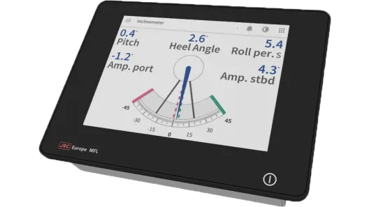 JRC Europe has developed a complete solution, combining a high-precision roll sensor with a dedicated display, fully compliant with IMO Resolution MSC.363(92) – Performance Standards for Electronic Inclinometers. Our robust digital roll sensor delivers accurate and reliable measurements, ensuring long-term performance under demanding maritime conditions.