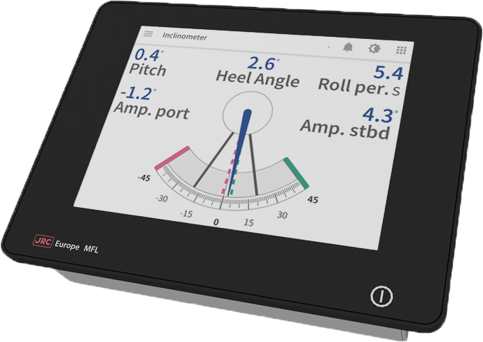 JRC Europe has developed a complete solution, combining a high-precision roll sensor with a dedicated display, fully compliant with IMO Resolution MSC.363(92) – Performance Standards for Electronic Inclinometers. Our robust digital roll sensor delivers accurate and reliable measurements, ensuring long-term performance under demanding maritime conditions.