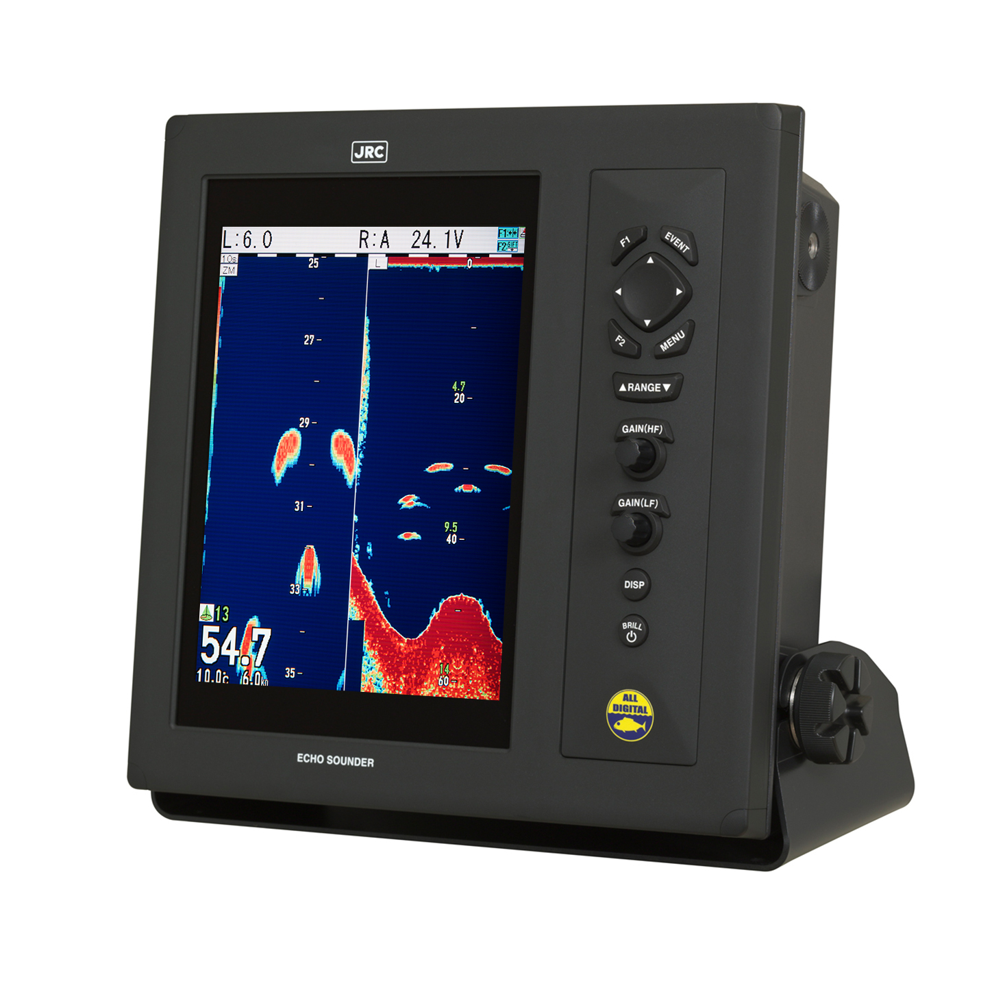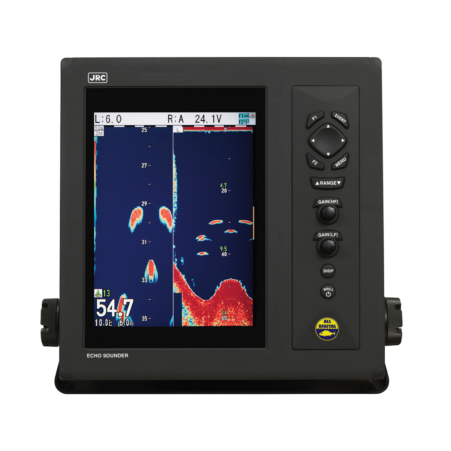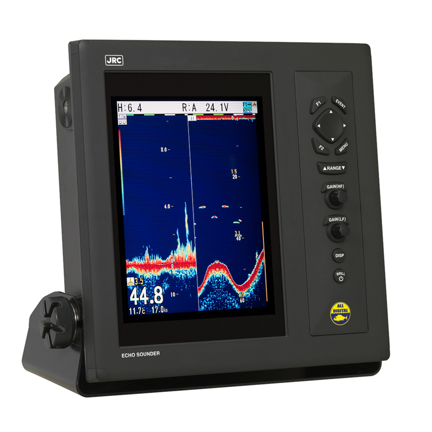 The JFC-800/810 all-in-one echo sounder utilizes a rugged 10.4-inch bonded and sunlight viewable display, offering advanced filtering capabilities using digital signal processing technology to ultimately provide a clear image and allow for deeper sounding at higher frequencies.