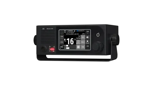 Our new 5-inch touch screen controlled Class A VHF radio (JRC model JHS-800S) featuring a uniform, corporate design with manual-free operation. The all-in-one unit (control unit with speaker, radiotelephone and DSC) has high sensitivity performance, Hi-Fi output and protection rate of IP56.