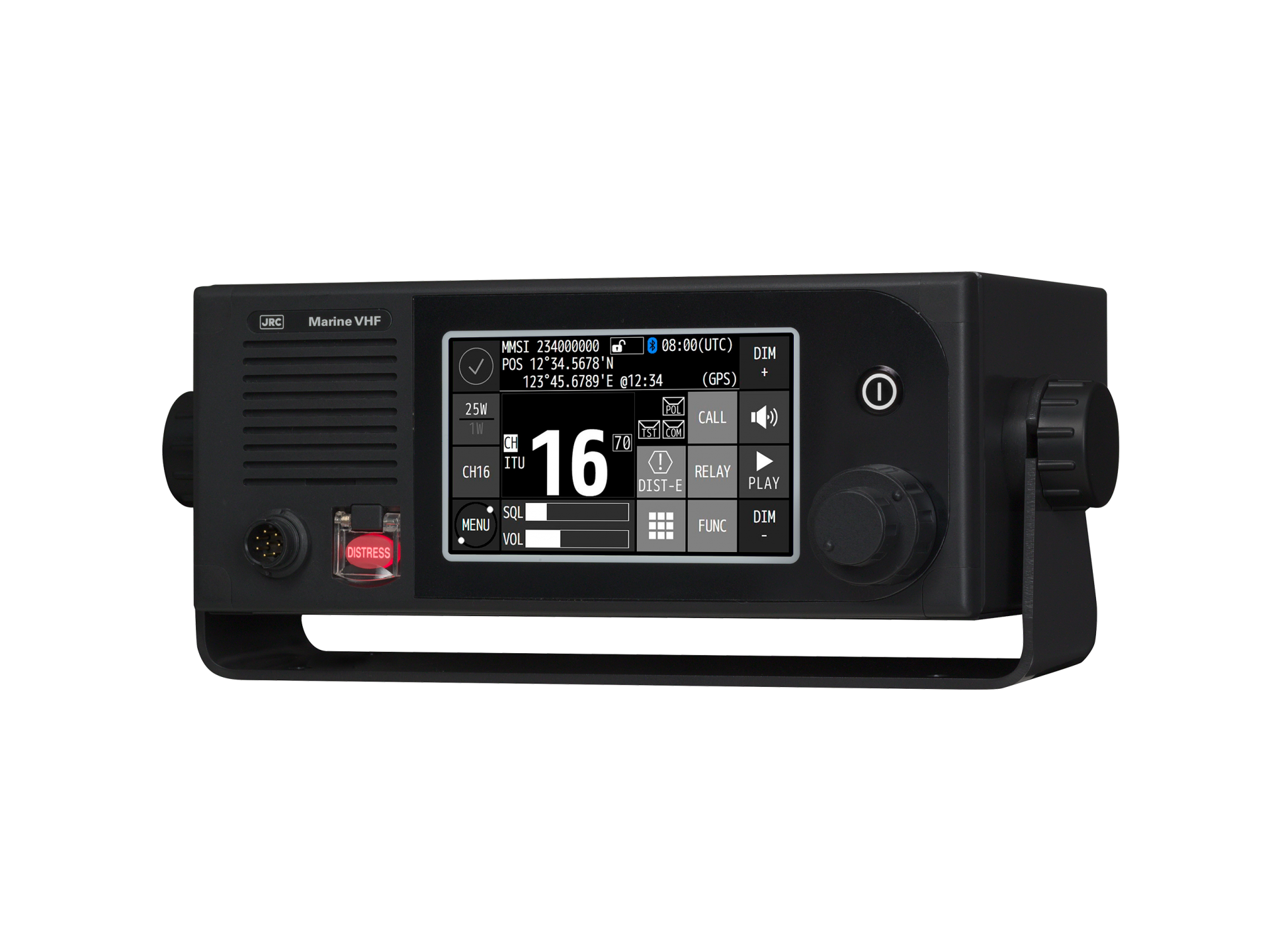 Our new 5-inch touch screen controlled Class A VHF radio (JRC model JHS-800S) featuring a uniform, corporate design with manual-free operation. The all-in-one unit (control unit with speaker, radiotelephone and DSC) has high sensitivity performance, Hi-Fi output and protection rate of IP56.