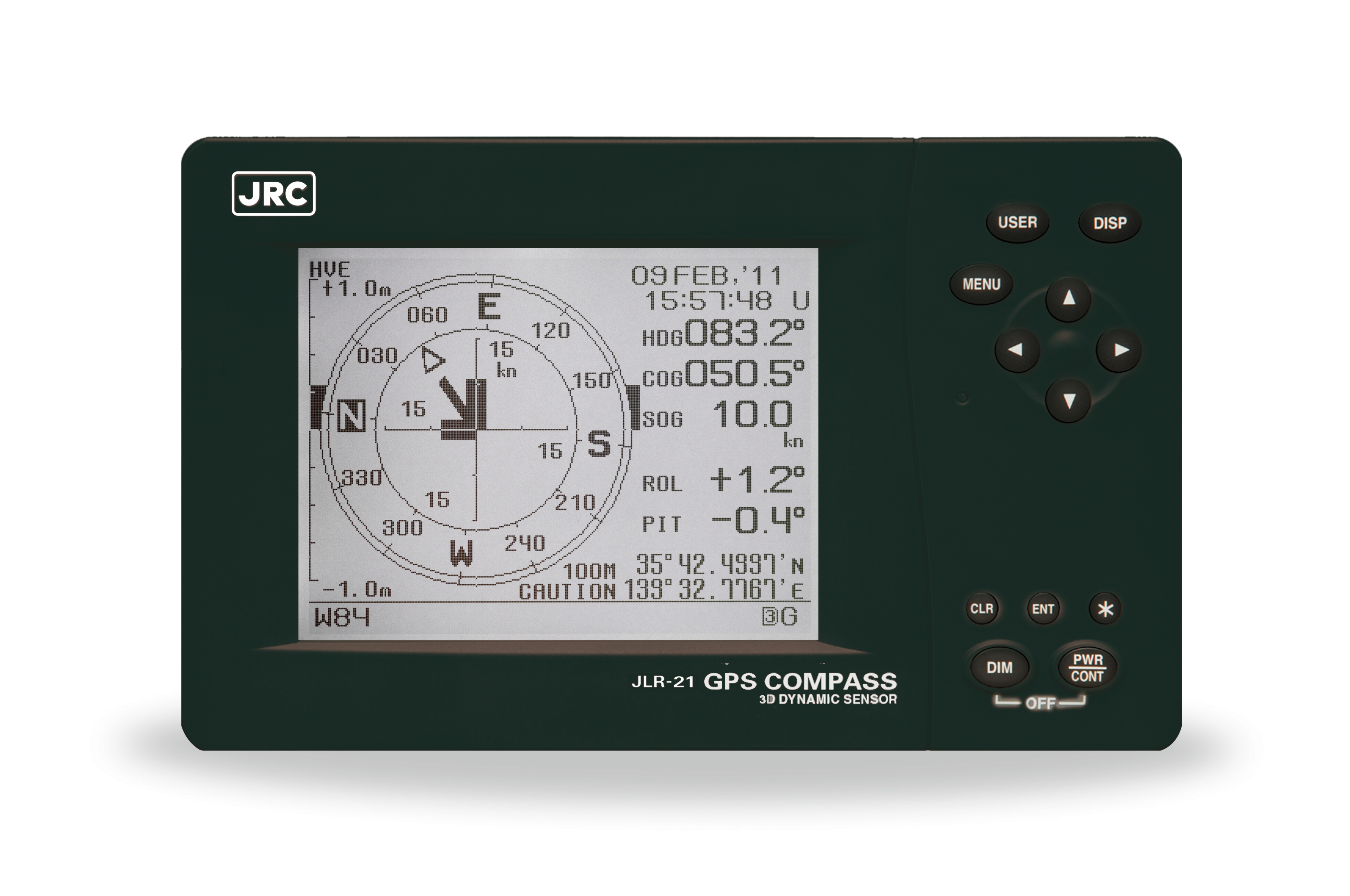The JLR-21 has heave functionality built-in as standard. In rough ocean conditions (with high waves), the GPS compass can correct up and down (attitude), movement. JLR-21 supports Speed Over Ground (SOG) and Course Over Ground (COG). The position, SOG and COG are updated every 200 milliseconds (which is 5 times faster than previous model JLR-20), delivering high accuracy.